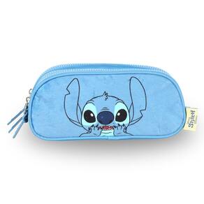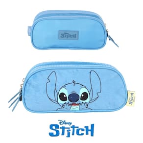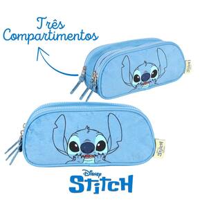 Estojo Triplo Escolar Stitch Disney Meninas Pelúcia - Cor: Azul