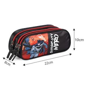 Estojo Escolar 3 Repartições Batman Luxcel Vermelho   O Estojo Escolar Juvenil Batman é um produto de alta qualidade, fabricado em poliéster resistente, garantindo durabilidade e resistência ao uso diário. Com uma cor unica, este estojo é perfeito para jovens que adoram o personagem Batman.   O modelo possui três compartimentos tornando-o ideal para estudantes que precisam carregar uma grande quantidade de material. Além disso, os puxadores personalizados adicionam um toque de charme e personalidade ao estojo.   O Estojo Sonic é conhecida pela qualidade e design de seus produtos, e este estojo não é exceção. Com sua capacidade e estilo, é uma escolha perfeita para o uso escolar ou juvenil.   Características do Estojo Escolar: - 3 Repartiçoes com bastante espaço - Fecho com zíper personalizado - Estampa Batman - Modelo Unico e Exclusivo - Material: 100% Poliéster - Material Forro: 100% Poliéster   Dimensões do Estojo Escolar: - Altura: 10 cm - Largura: 22 cm - Profundidade: 8 cm   Conteúdo: - 1 Estojo