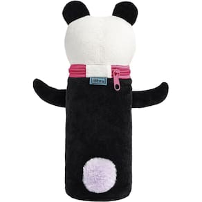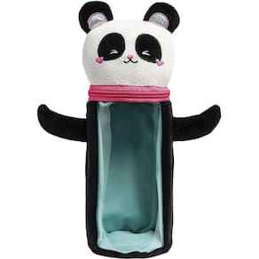 - Estojo tubo com design panda em tecido pelúcia macio