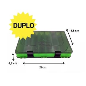 Estojo Yara Duplo para Iscas Artificiais Organizador Cores: Verde Estojo Yara Duplo para Iscas Artificiais Organizador com Canaleta para Garatéias. O Estojo Yara Duplo é a solução perfeita para pescadores que buscam praticidade e organização em suas pescarias. Com design inteligente de dupla face, este estojo oferece mais espaço e eficiência para armazenar suas iscas artificiais, jigs e jumping jigs de forma segura e acessível. A canaleta especialmente projetada permite o encaixe das garatéias, facilitando a acomodação das iscas e garantindo que permaneçam no lugar, evitando danos e emaranhados. Fabricado em plástico de alta qualidade, o estojo é durável e ideal para transportar suas iscas de forma prática e organizada. Especificações do Produto: Modelo: Yara Duplo. Tipo: Estojo para Iscas Artificiais, Jigs e Jumping Jigs. Material: Plástico resistente. Design: Dupla face com canaletas para encaixe de garatéias. Medidas: 28 x 18 x 4,5 cm. Indicado para: Armazenamento e transporte de iscas artificiais, jigs, jumping jigs e acessórios. Estojo Yara Duplo para Iscas Artificiais Organizador com Canaleta para Garatéias. O Estojo Yara Duplo é a solução perfeita para pescadores que buscam praticidade e organização em suas pescarias. Com design inteligente de dupla face, este estojo oferece mais espaço e eficiência para armazenar suas iscas artificiais, jigs e jumping jigs de forma segura e acessível. A canaleta especialmente projetada permite o encaixe das garatéias, facilitando a acomodação das iscas e garantindo que permaneçam no lugar, evitando danos e emaranhados. Fabricado em plástico de alta qualidade, o estojo é durável e ideal para transportar suas iscas de forma prática e organizada. Especificações do Produto: Modelo: Yara Duplo. Tipo: Estojo para Iscas Artificiais, Jigs e Jumping Jigs. Material: Plástico resistente. Design: Dupla face com canaletas para encaixe de garatéias. Medidas: 28 x 18 x 4,5 cm. Indicado para: Armazenamento e transporte de iscas artificiais, jigs, jumping jigs e acessórios. Marca: Não Informado Ean: 7794429520036