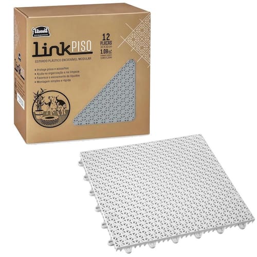 Estrado plástico encaixável piso branco 1,08m2 12 placas Estrado branco 30x30 1.08m 0,90x1,20m piso em geral limpeza organização Estrado plástico link piso branco - usual brinquedos Protege, decora e ajuda a manter a limpeza dos mais variados ambientes caixa com 12 placas tamanho 30 x 30 cm. Estrado plástico encaixável modular Pode ser utilizados em quartos, câmaras frias, academias, pisos para transito de pessoas, revestimento de baú de caminhões, de mercadorías e etc. Ajuda na organização e na limpeza, favorece o escoamento de líquidos. Especificações: - dimensões da embalagem cla : 32 x 32 x 17 cm - dimensões do produto: - comprimento: 30 cm - largura: 30 cm - contém: 01 caixa com 12 placas - marca: usual brinquedos - referência: 478 - certificado de segurança: inmetro Obs: 12 placas 30x30cm 1.08 m2 formato básico 0,90x1,20m