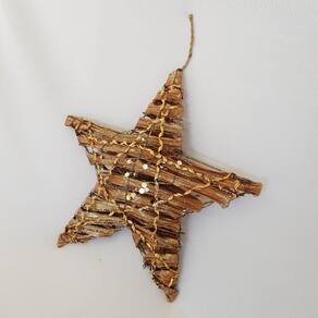 Material: ;Arame, Palha Natural, Cordão Dourado e Glitter;Peso: 128grCores: Palha e Dourado.Conteúdo da Embalagem: 1 Estrela.Diâmetro: 30cmEspessura: 8cm