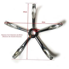 Palavras de Vendedor: Estrela em aço cromado, que possui uma estética mais bonita para cadeiras mais elaboradas, e já vai com rodízios silicone premium inclusos, que dará uma estética ainda mais bonita, é anti-ruido, e se você tiver piso sensível como porcelanato ou laminado irá lhe atender muito bem