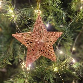 Estrela Glitter Vazado Rosê Gold 18cm – Decoração Natalina