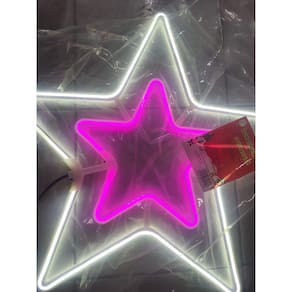 Estrela Neon Rosa e Branca, Com 60Cm.