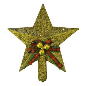Estrela ponteira para topo de árvore de natal art christmas glitterado com laço 15 cm