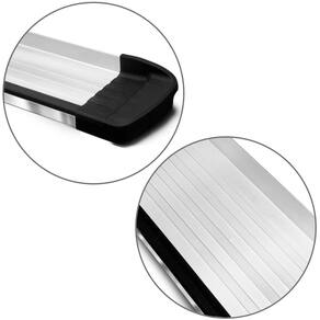 Estribo na cor do alumínio fosco com excelente acabamento lateral em alumínio polido e ponteiras injetadas em poliuretano, concedendo ainda mais beleza à peça acompanhado ao melhorcusto-benefíciodo ramo.