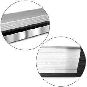 Fabricado em perfilado de alumínio, material dealto padrão e resistênciaque possibilita a capacidade máxima suportada de até 100kg para subida, o estribo também acompanha em toda sua extensão umpisante anti derrapantee uma borracha a fim de garantir a segurança para o motorista.