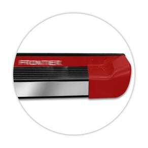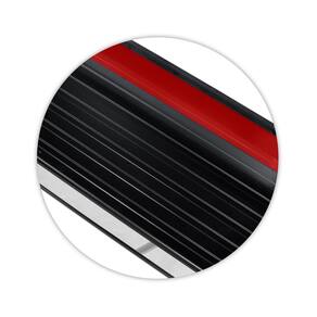 Fabricado em aluminio de alta qualidade e resistência e ponteiras em plástico injetado ABS , com pintura automotiva na cor Vermelho Alert de alto padrão, além de acabamento lateral cromado em aço inox.