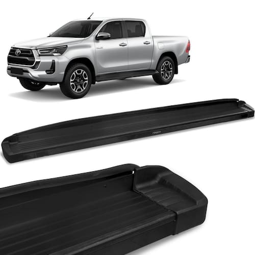 OEstribo Plataforma BepomodeloEleganceé um acessório instalado na lateral da sua Hilux, que tem como objetivo auxiliar na entrada e saída do veículo, oferecendo maior praticidade ao motorista e aos passageiros, outra característica importante é o design moderno e esportivo do estribo que proporciona um visual ainda mais completo para sua Pick up.