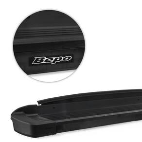 Estribo na cor Preto fosco com excelente acabamento lateral em alumínio polido e ponteiras injetadas em poliuretano, concedendo ainda mais beleza à peça acompanhado ao melhorcusto-benefíciodo ramo.