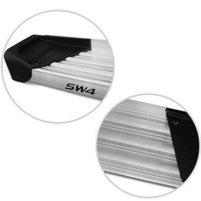 Fabricado em alumínio na cor Natural, material de alto padrão e resistência que possibilita uma capacidade máxima suportada de até 100kg para subida, o estribo também acompanha pisante antiderrapante em toda sua extensão a fim de garantir maior segurança ao pisar.