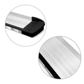 Estribo na cor do alumínio fosco com excelente acabamento lateral em alumínio polido e ponteiras injetadas em poliuretano, concedendo ainda mais beleza à peça acompanhado ao melhor custo-benefício do ramo.