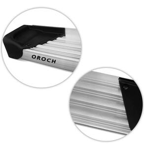 Fabricado em alumínio, material de alto padrão e resistência que possibilita uma capacidade máxima suportada de até 100kg para subida, o estribo também acompanha pisante antiderrapante em toda sua extensão a fim de garantir maior segurança ao pisar.