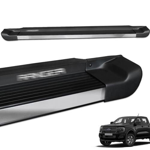 Fabricado em Aluminio de alta qualidade e resistência e ponteiras em plástico injetado ABS, com pintura automotiva na cor Preto Fosco de alto padrão, além de acabamento lateral cromado em aço inox e adesivo em alto-relevo resinado com o nome do veículo e pisante na cor preta para um estilo diferenciado.