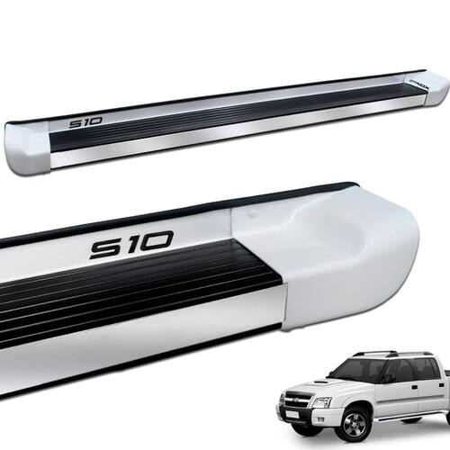 Fabricado em Aluminio de alta qualidade e resistência e ponteiras em plástico injetado ABS, com pintura automotiva na cor Branco Malher de alto padrão, além de acabamento lateral cromado em aço inox e adesivo em alto-relevo resinado com o nome do veículo e pisante na cor preta para um estilo diferenciado.