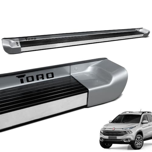 Fabricado em Aluminio de alta qualidade e resistência e ponteiras em plástico injetado ABS, com pintura automotiva na cor Prata Melfi de alto padrão, além de acabamento lateral cromado em aço inox e adesivo em alto-relevo resinado com o nome do veículo e pisante na cor preta para um estilo diferenciado.