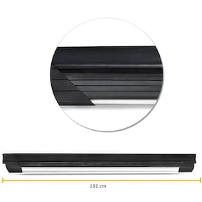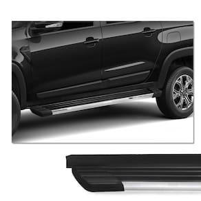 Estribo fabricado em Alumínio, com suas ponteiras em poliuretano, cujo materia de excelente qualidade conhecido pela sua alta resistência e durabilidade, possuindo acabamentos na cor preta deixando a sua Fiat Strada com um visual ainda mais completo.