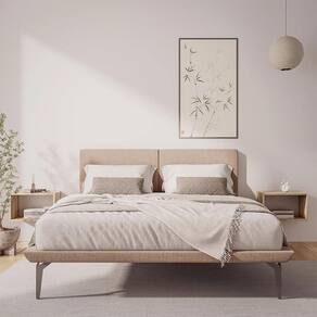 cama japonesa, cama bege, cama casal com cabeceira, cama bipartida, cama estofada linho, cama moderna, cama minimalista, cama com design japonês, cama luxo, cama casal 158cm, cama tokyo, cama com cabeceira almofadada, cama para colchão queen, cama sem colchão, cama decorativa quarto moderno