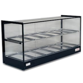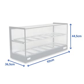 Com estrutura fabricada em perfil de alumínio anodizado e aço inox; bandejas com dobras em aço inox; vidros laterais com serigrafia, tratados termicamente (não solta com temperatura); com todos os vidros temperados; termostato; resistência elétrica em aço inox 304 tubular; fiação elétrica com revestimento em silicone resistente a 300C. A linha EVR, traz a referências do estilo retrô para o seu negócio. Seu design clean e compacto confere melhor visualização dos produtos, além de preserva-los quentes e saborosos.