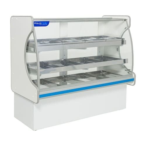Estufa 9 Bandejas Pop Luxo Polofrio Estufa 9 Bandejas Branca 220v Vitrine Estufa para salgados Polofrio: para exposição e conservação de alimentos quentes. Aquecimento por resistência. Regulagem por termostato analógico. Portas de correr em vidro. Pés reguláveis. Revestimento interno e externo em mdf. Disponível nas cores: branco ou preto. TEMPERATURA: até +60C. PRATELEIRAS: 4 níveis de grades em aramado reguláveis por portas. PESO: 77 Kg. POTÊNCIA: 920 W. CONSUMO: 14,72 kW/h. CAPACIDADE: 245 L. BANDEJAS: 4 de 460x280x35mm / 4 de 425x280x35mm/ 4 de 380x280x35mm. DIMENSÕES EXTERNAS (CxAxL): 850x115x61cm. Estufa POP Luxo Polofrio é na Atau. Marca - Polofrio Modelo - 5207 Capacidade - 245 L Frente - 85cm Altura - 1,15m Profundidade - 62cm Temperatura - até +60 C Peso - 62Kg Consumo - 14,72 Kw/h