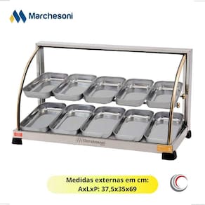 A Estufa para Salgados Linha Ouro 10 bandejas Marchesoni é ideal para expor e conservar alimentos sempre quentinhos. Indicadas para bares, padarias, restaurantes, cafeterias, lanchonetes, lojas de conveniência e serviços de alimentação em geral.