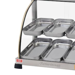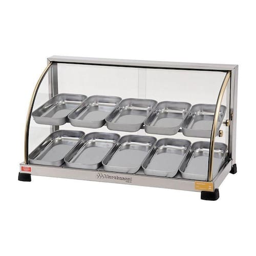 Estufa Curva 10 Bandejas Marchesoni Para Lanchonetes 127 VBandejas em aço inoxidável com 3 cm de altura;Elegantes frisos dourados;Termostato bimetálico para economia de energia elétrica;Resistência tubular de baixo consumo;Vidros Temperados: maior segurança;Umidificador: Seus produtos sempre fresquinhos;Ideal para expor e conservar alimentos sempre quentinhos.Indicadas para bares, padarias, restaurantes, cafeterias, lanchonetes, lojas de conveniência e serviços de alimentação em geral.Extra MáquinasEmpresa estabelecida desde 1985 no seguimento de equipamentos gastronômicos. Com sua sede em Belo Horizonte possui uma equipe especializada em equipamentos industriais.Ficha técnica- Potência: 250W- Quantidade de níveis: 2- Fonte do produto: 127VMedidas aproximadas do produto- Comprimento: 68 cm- Altura: 37 cm- Largura: 33 cm- Peso: 12,6 g