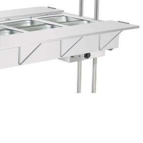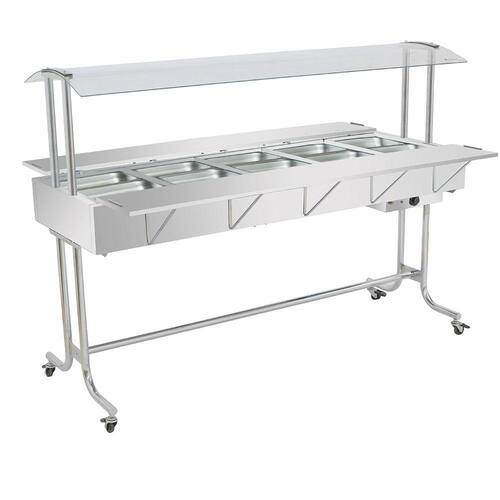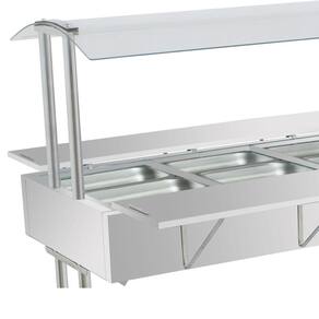 Desenvolvida para estabelecimentos que necessitam de um equipamento robusto e eficiente para manter os alimentos aquecidos, a estufa de aquecimento Master com 10 cubas é confeccionada com um design arrojado e matérias-primas de primeira. É indicada para ser utilizada em restaurantes, bares, lanchonetes, buffets, espaços de festas, refeitórios e muitos outros locais que precisam servir os alimentos aquecidos, mantendo sua qualidade e sabor. Esta estufa carro buffet aquecido possui o corpo e banho-maria confeccionados em aço inoxidável 430, proporcionando muito mais durabilidade e resistência ao equipamento. Conta com uma cobertura em vidro curvo inteiro de 4mm para proteger os alimentos expostos e garantindo muito mais higiene, além de contar com pés cromados confeccionados em tubo inteiro, ou seja, é totalmente livre de solda em sua base, permitindo maior estabilidade a estufa de aquecimento para alimentos. Suas 10 cubas GN 1/2 quentes são fabricadas em aço inoxidável, seguindo as regras e padrão mundial Gastronorm, para melhor utilização e segurança. Também possui um exclusivo sistema de platibanda, servindo como tampa para as cubas GN apoiada através de mão francesa. Seus rodízios possuem trava, evitando o deslocamento do equipamento durante o uso e um termostato que vai de 20C a 80C para o controle de temperatura.