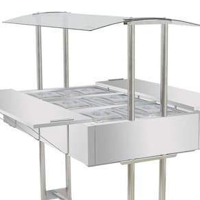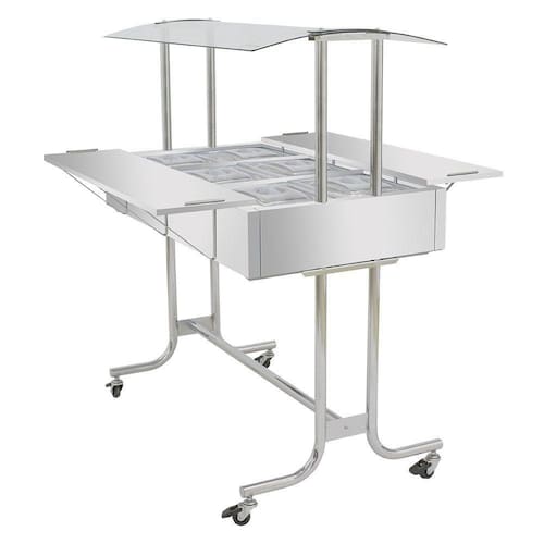 Desenvolvida para estabelecimentos que necessitam de um equipamento robusto e eficiente para manter os alimentos aquecidos, a estufa de aquecimento Master com 6 cubas é confeccionada com um design arrojado e matérias-primas de primeira. É indicada para ser utilizada em restaurantes, bares, lanchonetes, buffets, espaços de festas, refeitórios e muitos outros locais que precisam servir os alimentos aquecidos, mantendo sua qualidade e sabor. Esta estufa carro buffet aquecido possui o corpo e banho-maria confeccionados em aço inoxidável 430, proporcionando muito mais durabilidade e resistência ao equipamento. Conta com uma cobertura em vidro curvo inteiro de 4mm para proteger os alimentos expostos e garantindo muito mais higiene, além de contar com pés cromados confeccionados em tubo inteiro, ou seja, é totalmente livre de solda em sua base, permitindo maior estabilidade a estufa de aquecimento para alimentos. Suas 6 cubas GN 1/2 quentes são fabricadas em aço inoxidável, seguindo as regras e padrão mundial Gastronorm, para melhor utilização e segurança. Também possui um exclusivo sistema de platibanda, servindo como tampa para as cubas GN apoiada através de mão francesa. Seus rodízios possuem trava, evitando o deslocamento do equipamento durante o uso e um termostato que vai de 20C a 80C para o controle de temperatura.