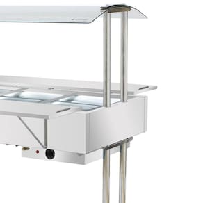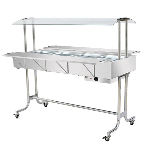 Desenvolvida para estabelecimentos que necessitam de um equipamento robusto e eficiente para manter os alimentos aquecidos, a estufa de aquecimento Master com 8 cubas é confeccionada com um design arrojado e matérias-primas de primeira. É indicada para ser utilizada em restaurantes, bares, lanchonetes, buffets, espaços de festas, refeitórios e muitos outros locais que precisam servir os alimentos aquecidos, mantendo sua qualidade e sabor. Esta estufa carro buffet aquecido possui o corpo e banho-maria confeccionados em aço inoxidável 430, proporcionando muito mais durabilidade e resistência ao equipamento. Conta com uma cobertura em vidro curvo inteiro de 4mm para proteger os alimentos expostos e garantindo muito mais higiene, além de contar com pés cromados confeccionados em tubo inteiro, ou seja, é totalmente livre de solda em sua base, permitindo maior estabilidade a estufa de aquecimento para alimentos. Suas 8 cubas GN 1/2 quentes são fabricadas em aço inoxidável, seguindo as regras e padrão mundial Gastronorm, para melhor utilização e segurança. Também possui um exclusivo sistema de platibanda, servindo como tampa para as cubas GN apoiada através de mão francesa. Seus rodízios possuem trava, evitando o deslocamento do equipamento durante o uso e um termostato que vai de 20C a 80C para o controle de temperatura.