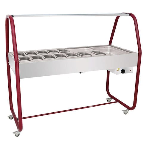 A estufa buffet de aquecimento para cachorro quente é ideal para locais que precisam servir as refeições e mantê-las aquecidas durante um bom tempo. Com esse carro buffet você poderá acondicionar molhos, acompanhamentos e pães, servindo uma variedade completa no seu negócio e ganhar dinheiro!