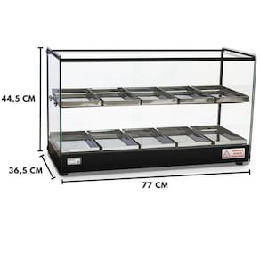 A estufa dupla EVR LP acompanha iluminação led, com perfil de alunínio anodizado em aço inox e bandejas com dobras em aço inox. Todos os vidros temperados e com termostato ideal para seu negocio.