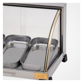 Ideal para expor e conservar alimentos sempre quentinhos.