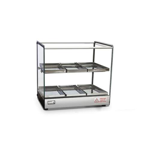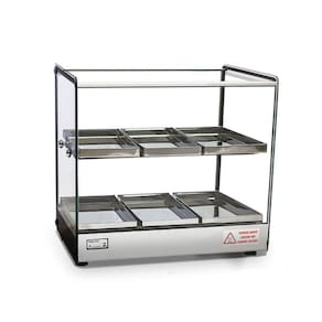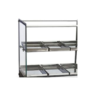Estufa para Salgado Quadrada Dupla 6 Bandejas Linha EVR BC TitãReferência no mercado, a Estufa para Salgado Quadrada Dupla 6 Bandejas Linha EVR BC Titã é ideal para conservar e ser usada como vitrine para seus alimentos. Sua estrutura é reforçada com alumínio anodizado e aço inox, material também presente nas dobras das bandejas, e seus vidros são temperados e os lateriais tratados termicamente, garantindo assim que eles não soltem independente da temperatura.Recomendada para lanchonetes e bares, sua eficiência e durabilidade garantem sua qualidade. Material de FabricaçãoEstrutura em Aço Inox e alumínio anodizadoVidros laterais com serigrafiaBandejas em Aço Inox Medidas do ProdutoProfundidade: 47cmLargura: 36,5cmAltura: 44,5cm INFORMAÇÕES TÉCNICASTensão: 127V ou 220VAtinge de 0 a 90CPotência: 250WFrequência: 50-60HzBandeja 14 x 28 x 2 cmTodos os vidros temperados;Termostato;Vidros laterais com serigrafia, tratados termicamente não solta com temperatura ;Resistência elétrica em aço inox 304 tubular;Fiação elétrica com revestimento em silicone resistente a 300C GARANTIA: 3 meses Imagens meramente ilustrativas. Produtos sujeitos a alterações sem aviso prévio.