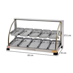 Quantidade de Bandejas: 10 Bandejas Duplas em Aço Inox com 3 cm de Altura