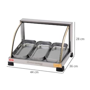 Quantidade de Bandejas: 03 Bandejas em Aço Inox com 3 cm de Altura