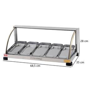 Quantidade de Bandejas: 05 Bandejas em Aço Inox com 3 cm de Altura