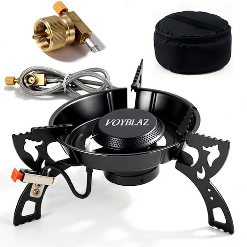 Experimenta la comodidad de cocinar al aire libre con la estufa portátil de gas propano VOYBLAZ, que ofrece un potente rendimiento de 12,000 BTU en un diseño compacto. Esta estufa de camping de un quemador cuenta con una construcción robusta con componentes de acero inoxidable de 4 mm de grosor para una durabilidad excepcional. El diseño cuidadosamente ingenierizado incluye un protector contra viento incorporado y patas ajustables para una cocción estable en terrenos irregulares. La estufa viene equipada con un conector para cilindro de alta calidad, un encendido piezoeléctrico para un arranque fácil y una válvula ajustadora de llama para un control preciso de la temperatura. La manguera trenzada de 99 cm (39 pulgadas) proporciona flexibilidad en la colocación del tanque de gas, mientras que el quemador de alta eficiencia garantiza un uso óptimo del combustible. Incluye un estuche de transporte conveniente para facilitar su transporte y almacenamiento. Perfecta para acampar, hacer senderismo, picnics y cualquier aventura al aire libre donde la potencia confiable para cocinar sea esencial. La construcción resistente de la estufa y sus características prácticas la convierten en la compañera ideal para los entusiastas del aire libre que exigen un rendimiento confiable de su equipo de cocina. - POTENCIA DE SALIDA: Estufa de camping de un quemador con 12,000 BTU y válvula de control de llama precisa para un rendimiento eficiente en la cocina al aire libre - PROTECCIÓN CONTRA EL VIENTO: Diseño con protector contra viento incorporado que ayuda a mantener una llama constante en condiciones exteriores mientras maximiza la eficiencia del combustible - CARACTERÍSTICAS DE ESTABILIDAD: Patas ajustables que brindan mayor estabilidad en terrenos irregulares, ideal para camping y uso al aire libre - DISEÑO PORTÁTIL: Incluye un estuche de transporte conveniente y presenta un diseño compacto con una manguera de combustible de 99 cm para opciones flexibles de instalación - CONSTRUCCIÓN DURADERA: Fabricada con marco de acero inoxidable de 4 mm de grosor y equipada con un sistema de encendido piezo confiable para un desempeño duradero