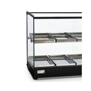 A preservação da temperatura é garantida pelo uso de vidros laterais tratados termicamente, vidros temperados, termostato e resistência elétrica em aço inox 304 tubular. A fiação elétrica com revestimento em silicone resistente a altas temperaturas assegura a segurança e o desempenho do equipamento.