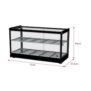 Seu design quadrado com cantos retos foi projetado para facilitar a limpeza e garantir melhor vedação, reduzindo frestas e evitando o acúmulo de resíduos. As portas e laterais em vidro temperado garantem visibilidade total dos produtos, enquanto o sistema de aquecimento elétrico com distribuição uniforme de calor mantém os alimentos sempre na temperatura ideal de consumo.