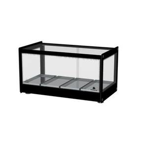 Seu design quadrado com cantos retos foi projetado para facilitar a limpeza e garantir melhor vedação, reduzindo frestas e evitando o acúmulo de resíduos. As portas e laterais em vidro temperado garantem visibilidade total dos produtos, enquanto o sistema de aquecimento elétrico com distribuição uniforme de calor mantém os alimentos sempre na temperatura ideal de consumo.