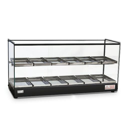 Estufa evr 12 bandejas dupla perfil preto 220v - titãa linha evr, traz a referências do estilo retrô para o seu negócio. Seu design clean e compacto confere melhor visualização dos produtos, além de preserva-los quentes e saborosos. Caracteristicas:estrutura fabricada em perfil de alumínio anodizado e aço inox; bandejas com dobras em aço inox; vidros laterais com serigrafia, tratados termicamente não solta com temperatura ; com todos os vidros temperados; termostato; resistência elétrica em aço inox 304 tubular; fiação elétrica com revestimento em silicone resistente a 300c. Especificações:marca: titãmodelo: evr bp - 12bdcor do perfil: pretotensão: 220vpotência: 600wFrequência: 50-60hzdimensão: 92 x 36,5 x 44,5 cmpeso liquido: 19kgbandeja: 12,5x31,5x2cmgarantia: 3 meses