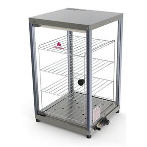 Essa Estufa conta com resistência blindada e termostato com sinalizador podendo deixar seus salgados sempre aquecidos para o consumo imediato. Sua estrutura é fabricada em aço com fino acabamento em inox e visores de vidro com expositor interno de 4 divisões.