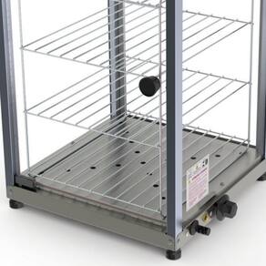 Essa Estufa conta com resistência blindada e termostato com sinalizador podendo deixar seus salgados sempre aquecidos para o consumo imediato. Sua estrutura é fabricada em aço com fino acabamento em inox e visores de vidro com expositor interno de 4 divisões.