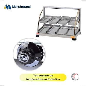 A Estufa para Salgados Linha Ouro 8 bandejas duplas MARCHESONI é ideal para expor e conservar alimentos sempre quentinhos. Indicadas para bares, padarias, restaurantes, cafeterias, lanchonetes, lojas de conveniência e serviços de alimentação em geral.