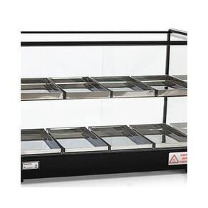 A estufa conta com vidros temperados em todas as suas partes, garantindo a segurança e resistência necessárias. Além disso, possui iluminação LED, que valoriza a exposição dos alimentos e atrai a atenção dos clientes. A prateleira com iluminação também contribui para uma apresentação sofisticada dos produtos.