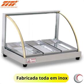 A Estufa Vitrine Curva para Salgados 3 bandejas W3B da Titã possui um visual Clean, o que ressalta os produtos expostos com a mesma eficiência e uma menor manutenção. Elegância e economia são as marcas da linha W. Estufa ideal para uso em pequenos negócios como bares e lanchonetes.