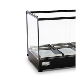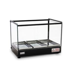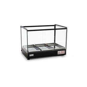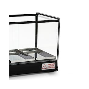 Estufa Vitrine Quadrada para Salgados 3 Bandejas EVR Preta TitãA Estufa Vitrine Quadrada para Salgados 3 Bandejas EVR Preta Titã é perfeita para a conservar e expor seus alimentos, ela trabalha de forma exemplar para que a comida esteja sempre na temperatura certa. Compacta, ela se adapta ao ambiente Sua estética Clean e visual retrô possuem a mesma eficiência porém com o custo de sua manutenção mais baixo que as demais.Sendo uma das mais bem avaliadas no mercado, ela é a estufa ideal para o seu negócio Material de FabricaçãoEstrutura em alumínio anodizado e aço inox;Bandejas com dobras em aço inox;Vidros laterais com serigrafia Medidas do produtoComprimento: 47 cmLargura: 36,5 cmAltura: 35,5 cm INFORMAÇÕES TÉCNICASCor do Perfil: PretoAtinge de 0 a 90CPotência 250 WFrequência 50 - 60 HzTensão 127 / 220 VBandeja 14 x 28 x 2 cmTodos os vidros temperados e tratados termicamente;Termostato;Vidros laterais com serigrafia, tratados termicamente não solta com temperatura ;Resistência elétrica em aço inox 304 tubular;Fiação elétrica com revestimento em silicone resistente a 300CProduto Certificado pelo Inmetro GARANTIA: 3 meses Imagens meramente ilustrativas. Produtos sujeitos a alterações sem aviso prévio.