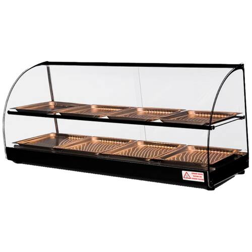 Características da Estufa Vitrine Salgados Curva Dupla Com LED 8 Bandejas Preta Caliope Tita: