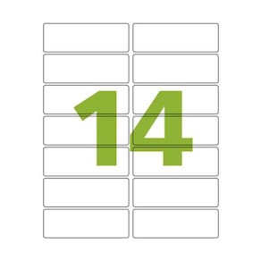 ETIQUETA Adesiva LASER/INK tamanho 33,9mm x 101,6mm Ref 6182 Caixa com 100 Folhas - Maxprint Etiquetas indicadas para impressoras Jato de tinta inkjet e laser de uso doméstico ou corporativo e Copiadora. Tipo de Adesivo: Acrílico padrão de Mercado Compatível com: Impressoras Jato de Tinta, Laser e copiadora. Modelo: 6182 Tamanho Folha: Carta Formato Etiqueta: 33,9mm x 101,6 mm Etiquetas por Folha: 14 Etiquetas Cor: Branca Embalagem: 100 Folhas Etiqueta por embalagem: 1400 Etiquetas Contém: 01 - Caixa de Etiqueta 6182 em folha, tamanho 33,9mm x 101,6mm, caixa com 100 folhas. Ean: 7897975002510